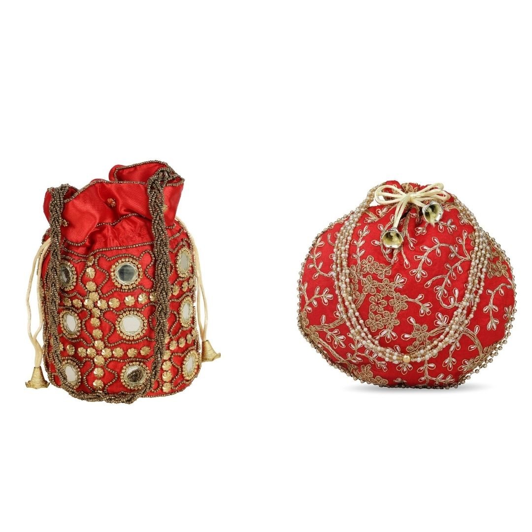 Combo – Designer Embroidered Potli Bag – Red & Red