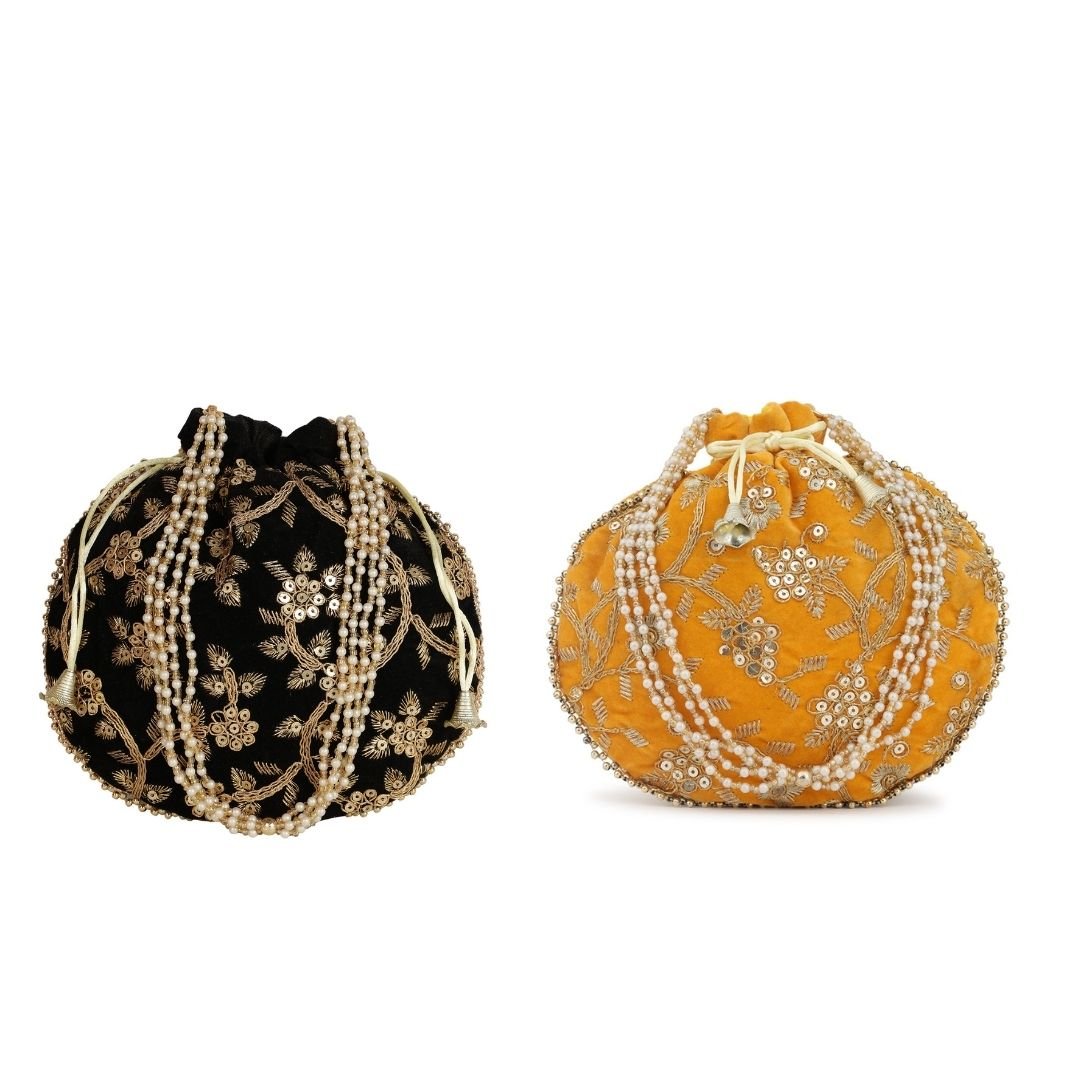 Combo – Designer Embroidered Potli Bag – Yellow & Black