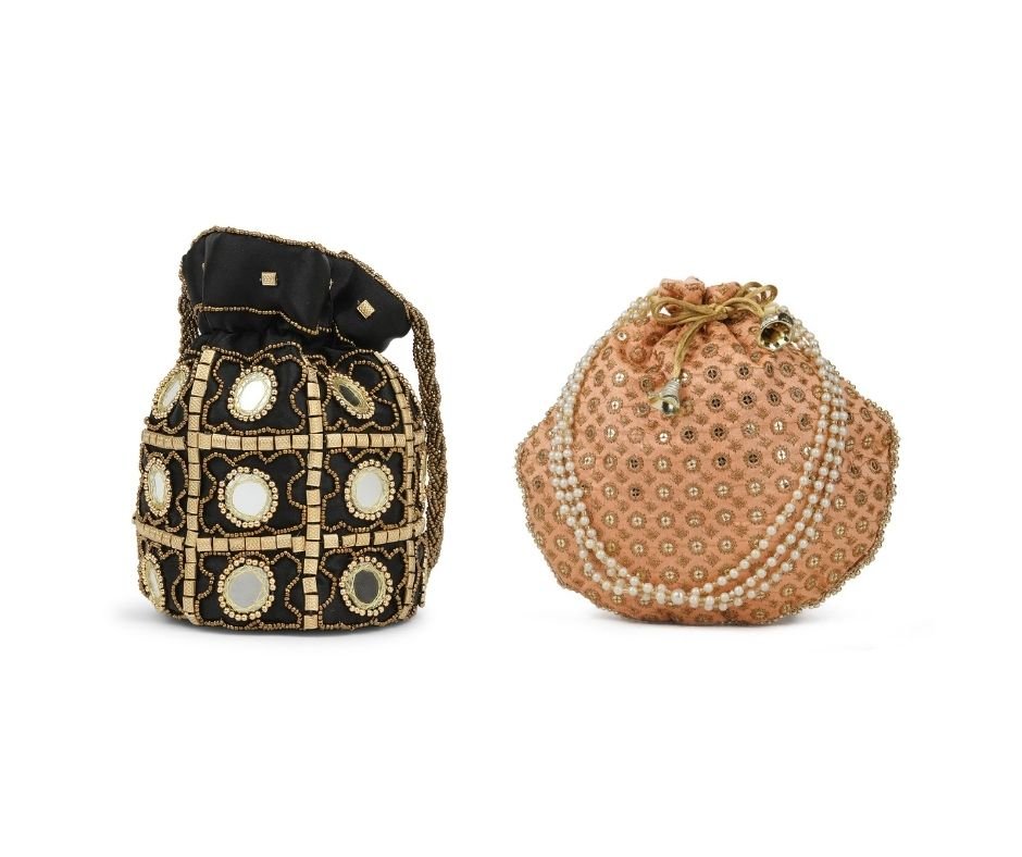 Be the first to review “Combo of Beige & Black Color Designer Embroidered Potli Bag” Cancel reply