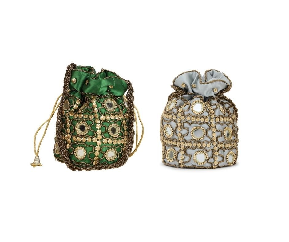 Be the first to review “Combo of Gold & White Color Designer Embroidered Potli Bag” Cancel reply